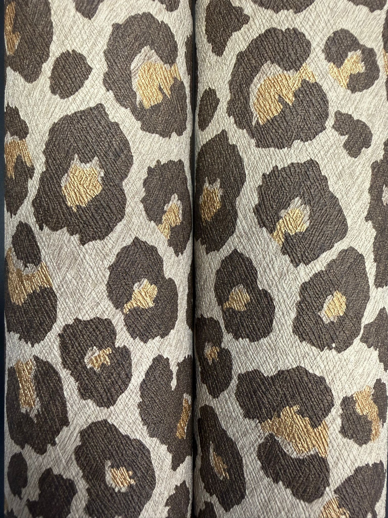 Paul Moneypenny Leopard Print Chocolate and Gold Wallpaper at Nobletts. Luxury designer animal print wallpaper for bold, glamorous statement interiors.