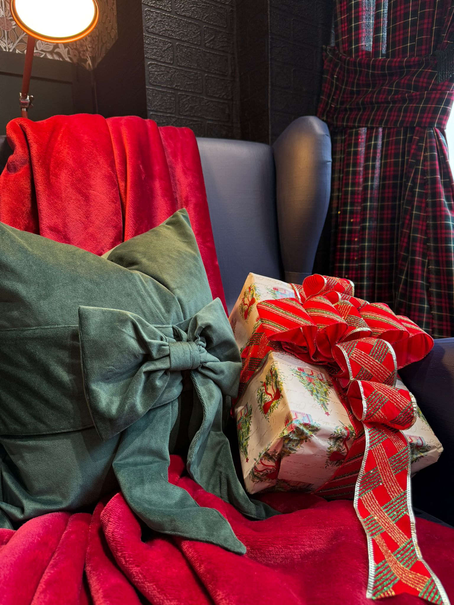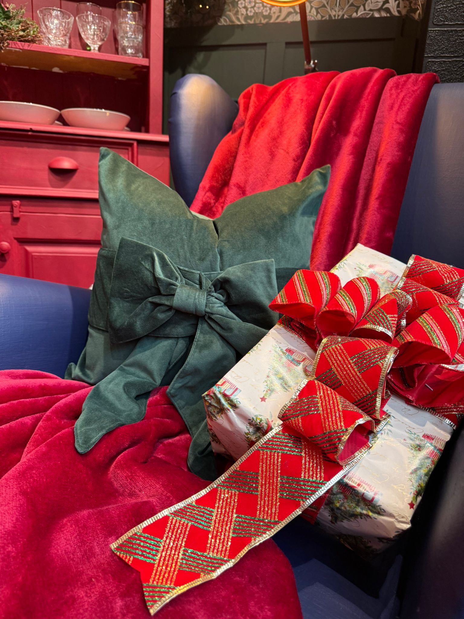 That bold, oversized velvet bow isn’t just decoration – it’s the centrepiece. Playful yet elegant, it transforms a simple cushion into a glamorous showstopper.