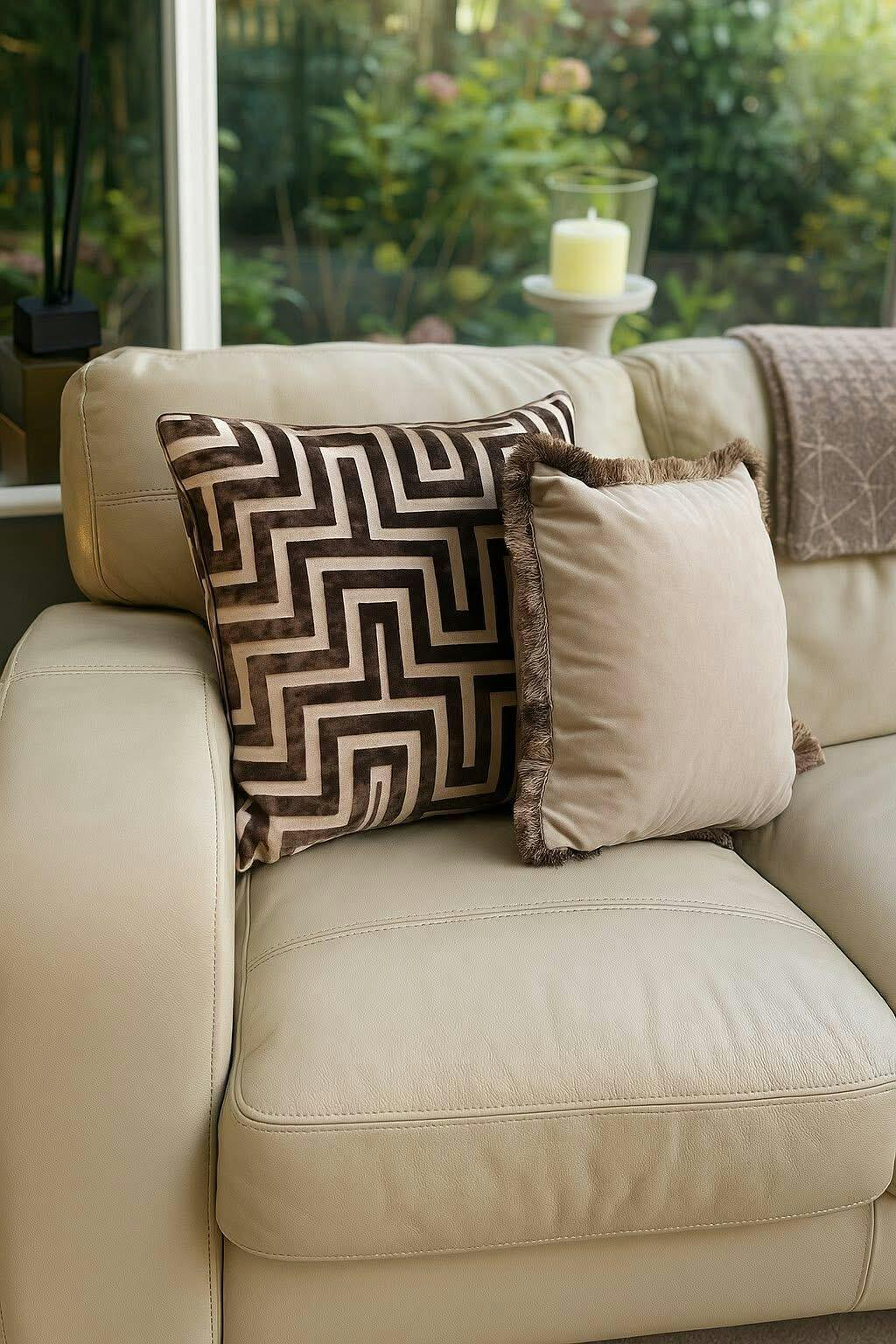 The Amazing Choc Cushion is a geometric masterpiece. Its bold chocolate and cream maze-like pattern is both contemporary and timeless, making it a standout piece in any space. The deep chocolate tones create warmth, while the lighter cream accents provide the perfect contrast, giving the design depth and texture.