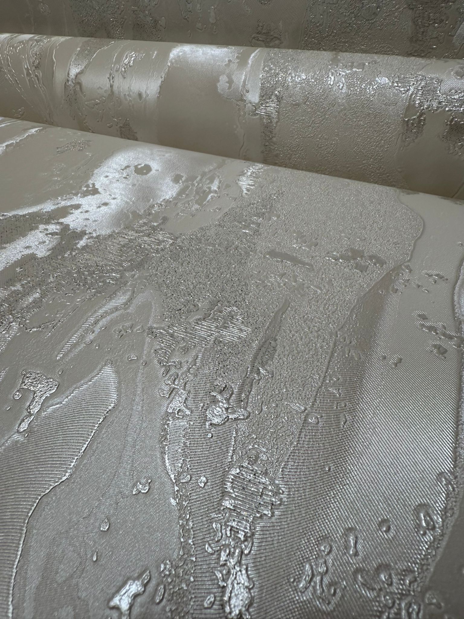 Inspired by the natural veining and fluid forms of real marble, the design features elegant sweeps and organic textures that mimic the stone’s unique charm. Look closely and you’ll see layers of embossed detail – glossy ridges meet soft matte textures, creating a stunning three-dimensional finish. The result? A wallpaper that feels tactile, modern, and utterly luxurious.