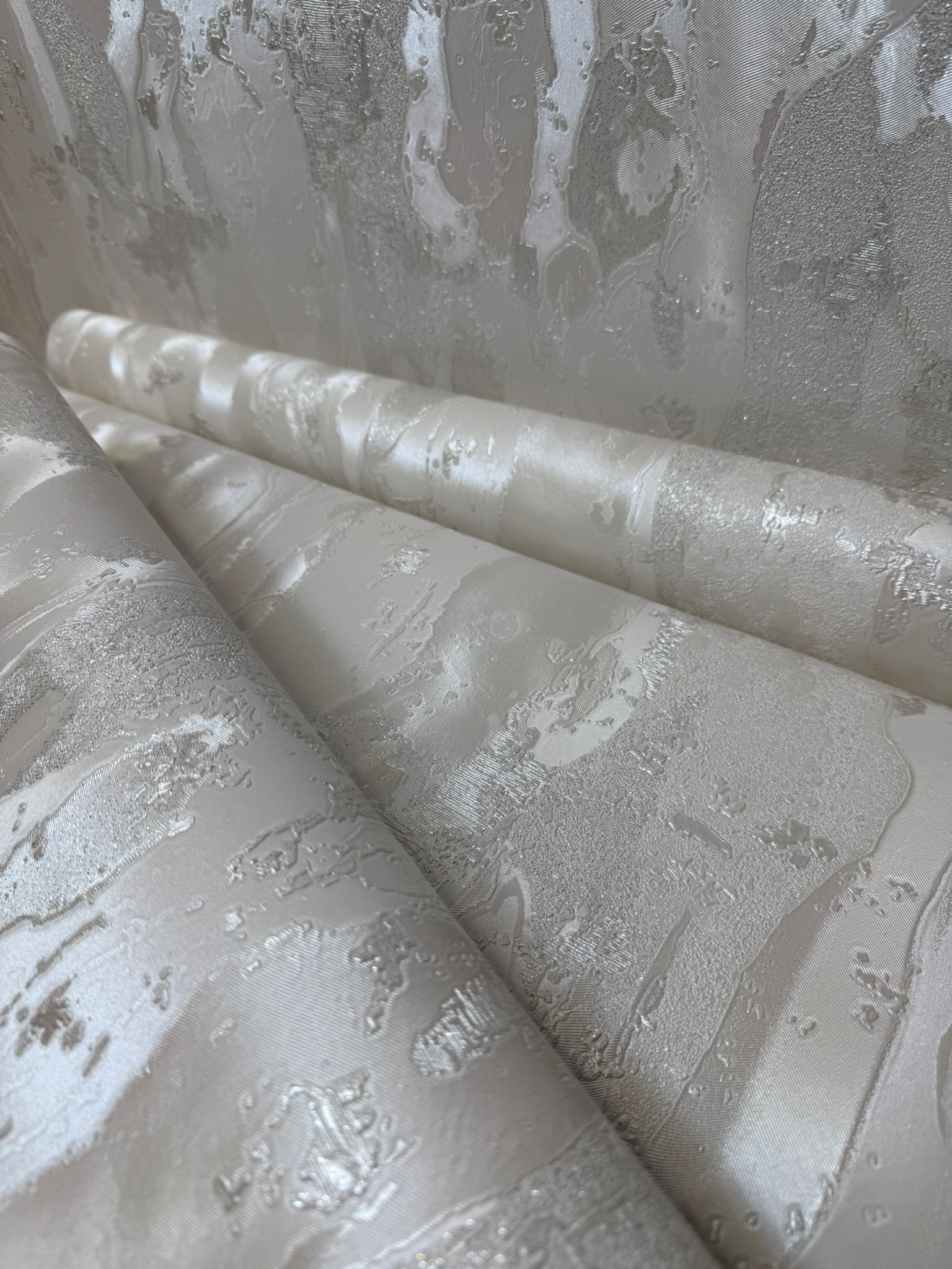 Elegant marble-effect design in ivory, pearl, and silver tones