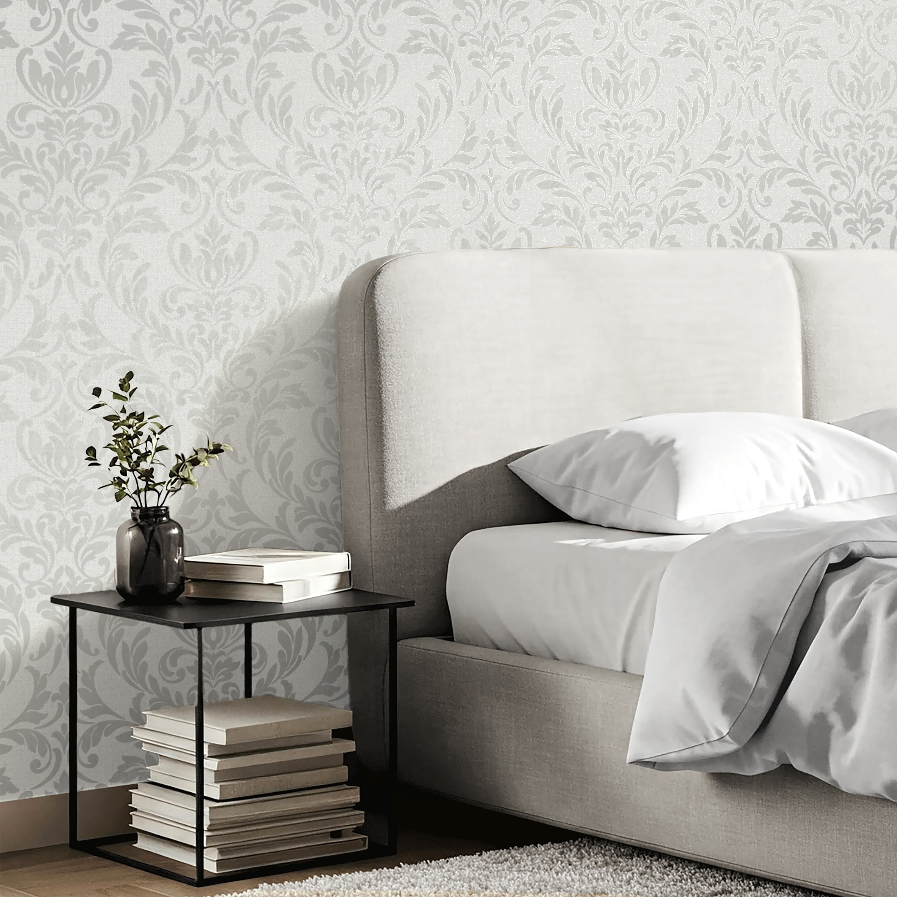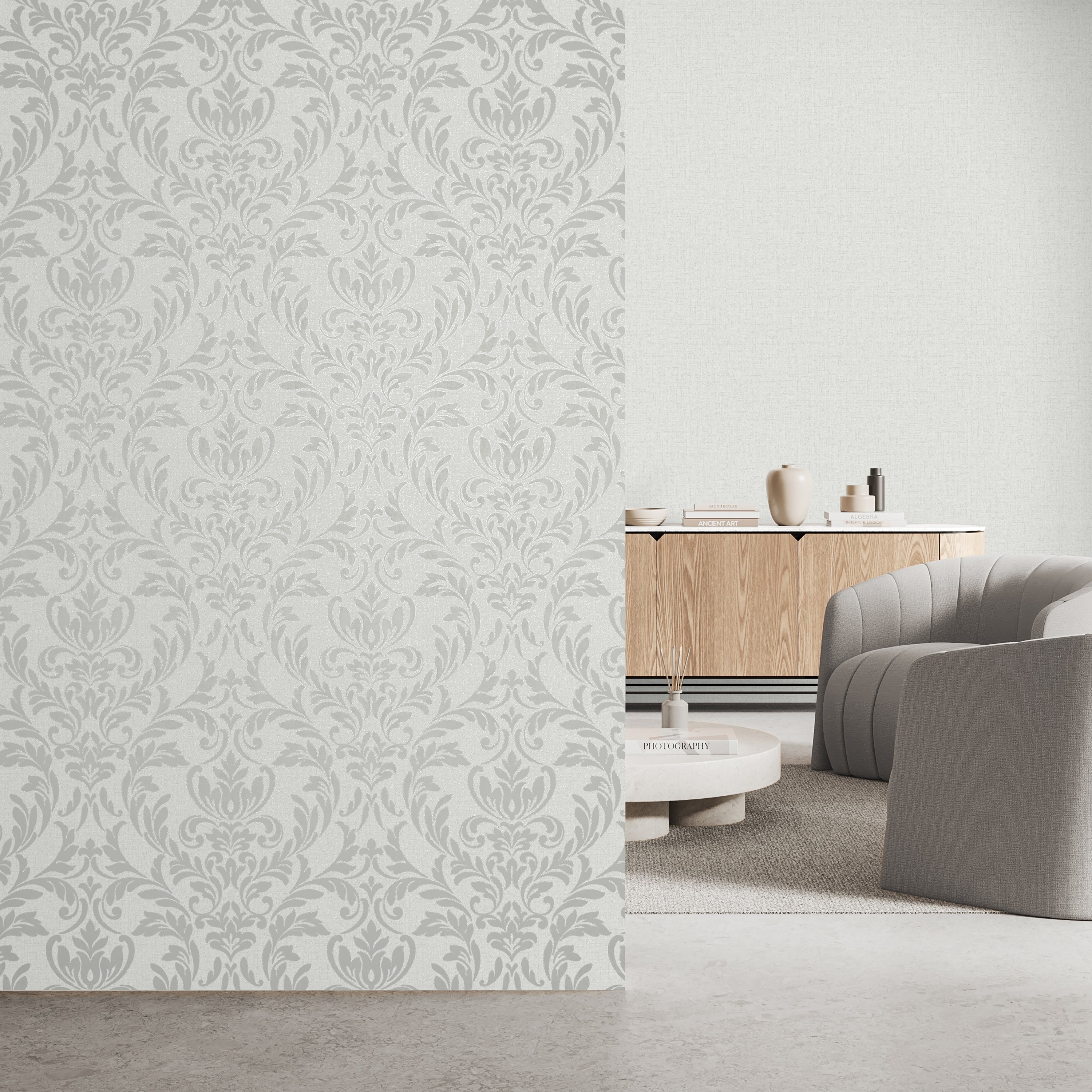 Azara Damask Light Grey is a natural fit for living rooms, dining areas, and bedrooms that need a touch of refined character. Imagine it behind a sleek oak sideboard, a soft velvet sofa, or as a statement wall behind your bed — effortlessly elegant without being over the top. Pair it with warm metallics or soft neutrals to create a space that feels serene, stylish, and beautifully balanced.